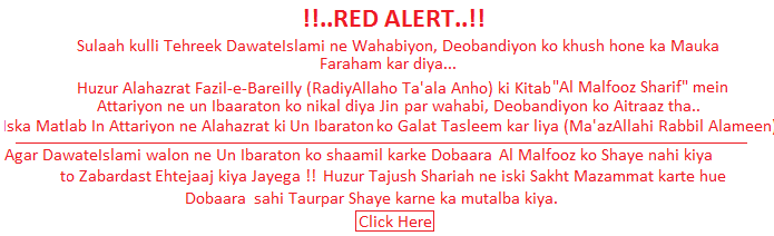 Alahazrat Mujaddid-e-Azam Deeno-o-Millat Ashah Imam Ahmed Raza Khan Fazil-e-Bareilly (RadiyAllaho Ta'ala Anho) ki Kitaab Al Malfooz Sharif ki kai Ibaraton ko DawateIslami wale Attariyon ne nikaal kar Shaye kiya..!!